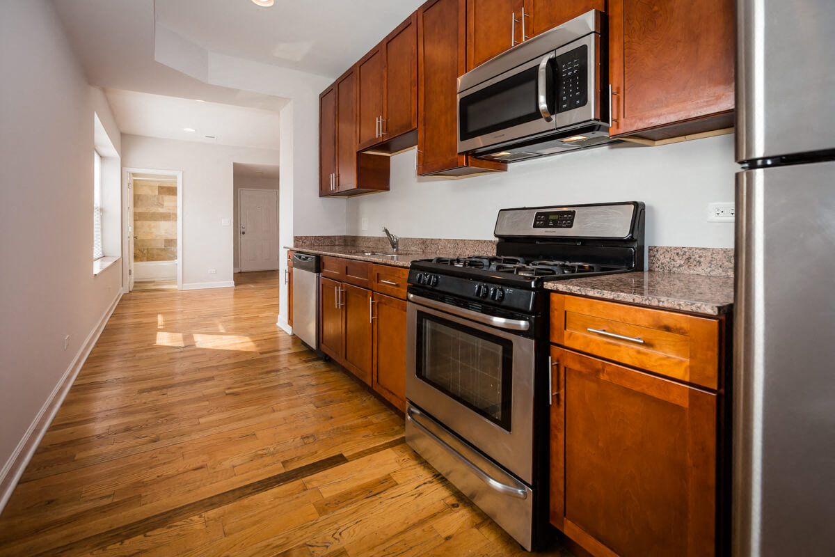 Just off of Ridge Boulevard lies this beautiful yellow brick building spanning the intersection of Rogers Avenue and Touhy Avenue. CTA bus stops are plentiful in this area while getting to the "L" is a quick ten-minute walk. Nearby Clark Street is jam-packed with local eateries, boutiques, salons, and more. Inside, these renovated apartments stand out with hardwood flooring and crown molding. The kitchen has been upgraded with cherry wood cabinetry, stone countertops, and stainless steel appliances. The bathroom's Sienna bath tiling and updated vanity and fixtures create a warm, modern feel. Washer and dryers are included in each unit. Disclaimer: Pictures shown may depict a different apartment in this building with similar layout and renovations as advertised.